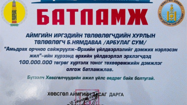 Арбулаг сумын ИТХ, ЗДТГ-ын хамт олон сургуулийн 100 жилийн ойн баярт зориулж 2,000,000 төгрөг хандивлалаа